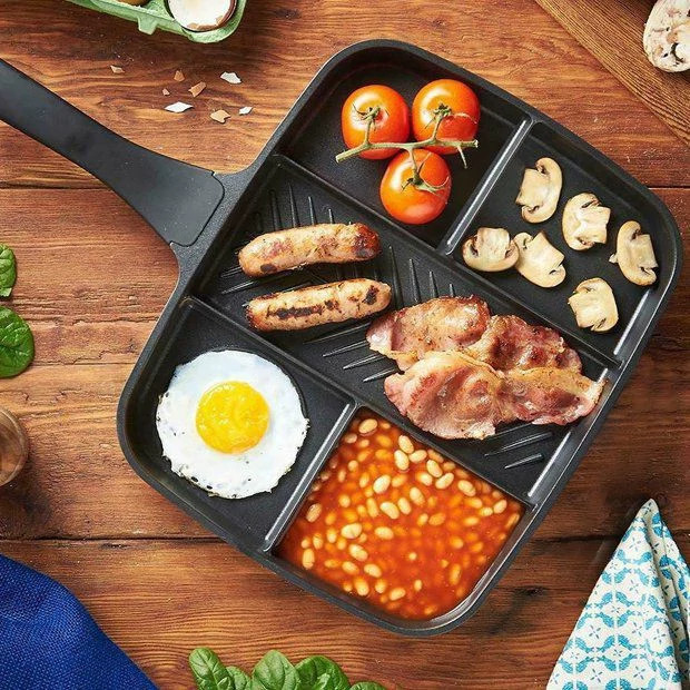 قابلیت استفاده در فر ، تابه با محفظه بندی تفکیک شده ، سرخ کردن . گریل کردن . کباب کردن مواد ، آماده کردن یک وعده غذایی کامل ، پوشش نچسب بسیار مقاوم ، قابلیت انتقال یکنواخت حرارت